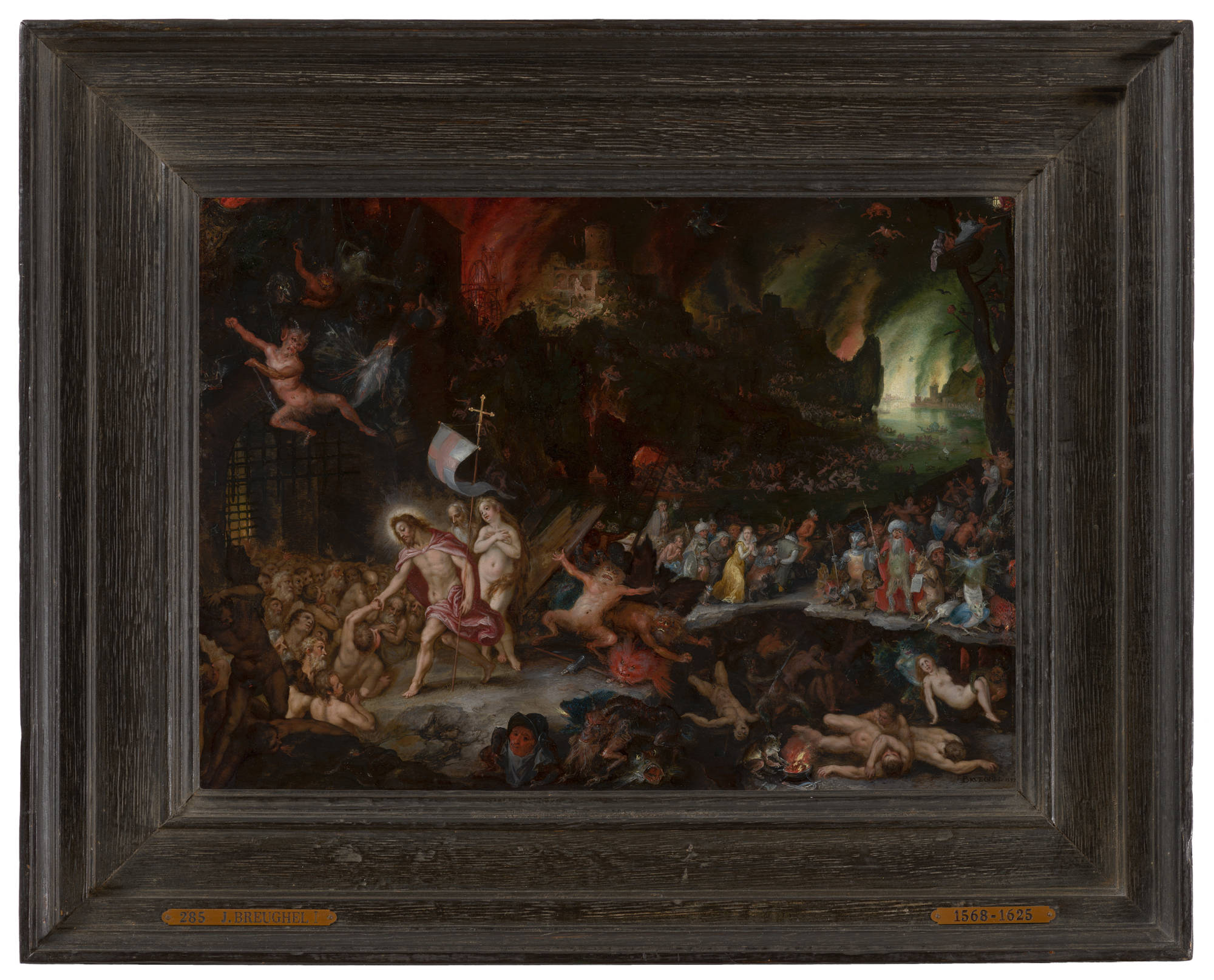 After his death, Christ was supposed to have descended into the underworld, to free Adam and Eve, and all the righteous, and take them up to heaven. This descent is depicted here by Brueghel I and Rottenhammer, who often worked together.