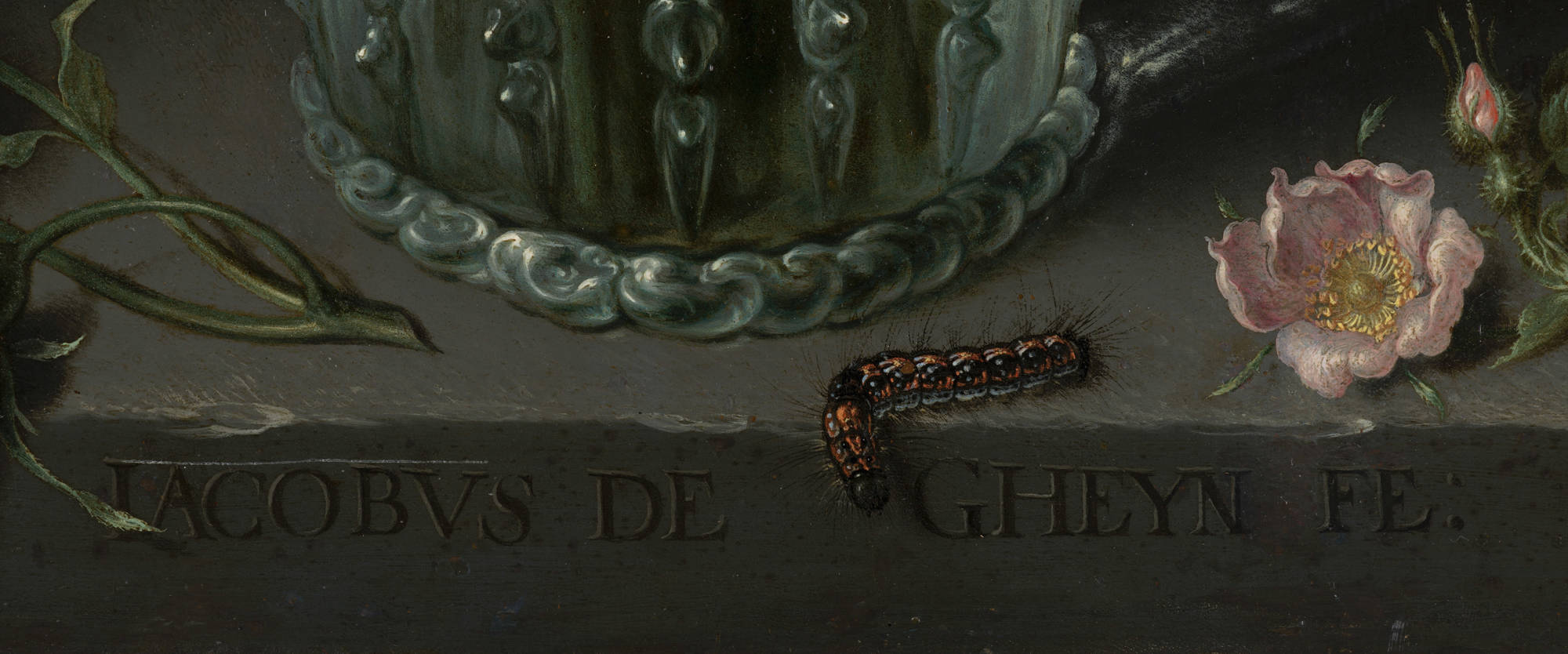 De Gheyn has not copied an existing bouquet, as the flowers depicted here bloom at different times of the year. He was concerned instead with painting a ‘portrait’ of the most beautiful flowers. This is why he placed them all at the front of the bouquet, where they were equally visible.