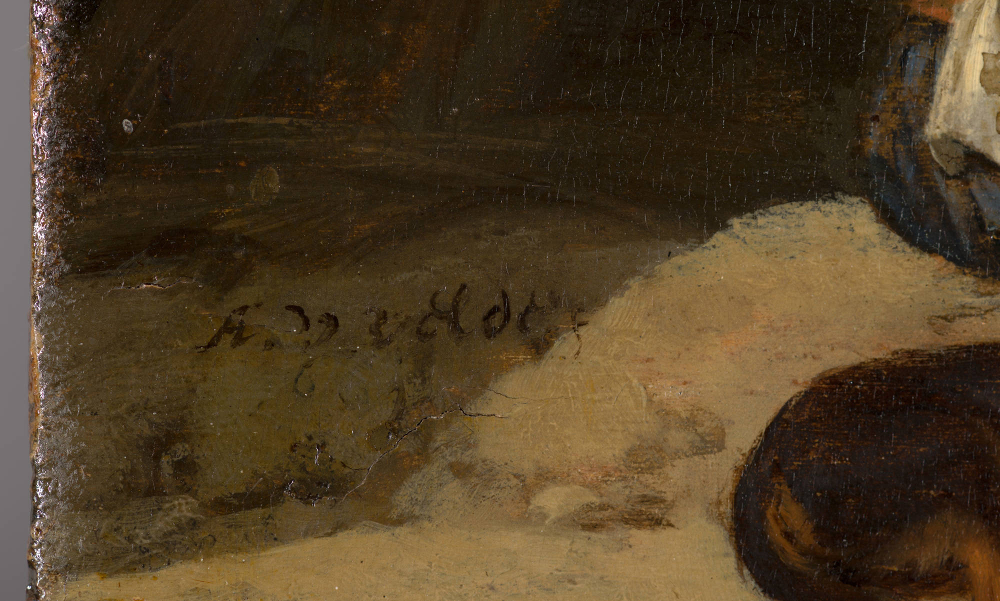 On a summer’s day, a group of people have gathered by a simple tent. A wagon and a carriage are driving along the beach and there are boats on the surf. The horizon is extremely low, making it seem as if we are sitting on the beach ourselves. It also provides plenty of space for the impressive cloudy sky and the soft yellow glow of the sunlight. Adriaen van de Velde was a master in depicting this sort of atmospheric effect.
