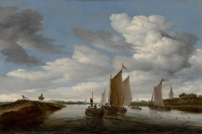 River Landscape with Sailing Boats and a Horse-Drawn Barge