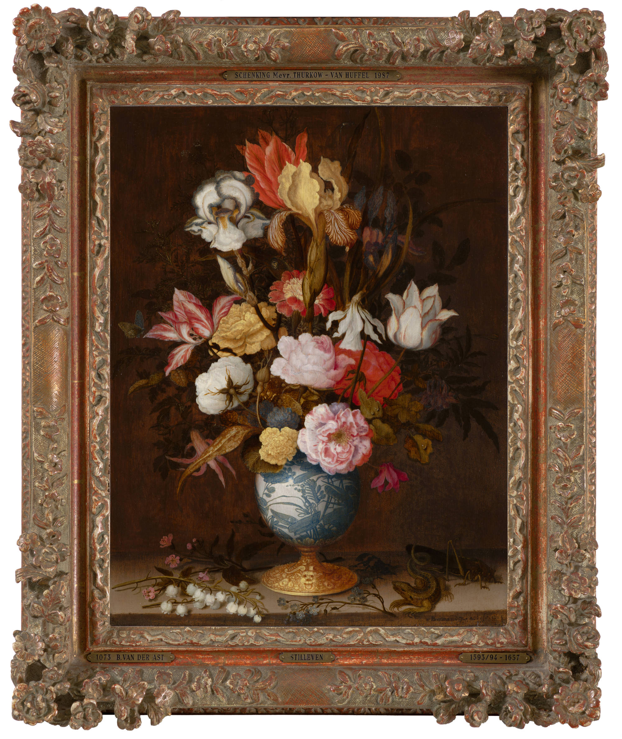 Van der Ast was taught to paint by his brother-in-law Ambrosius Bosschaert, one of the first artists to specialise in flower pieces. Van der Ast initially painted in the style of his teacher, as is the case here. But his later bouquets became more relaxed and natural.