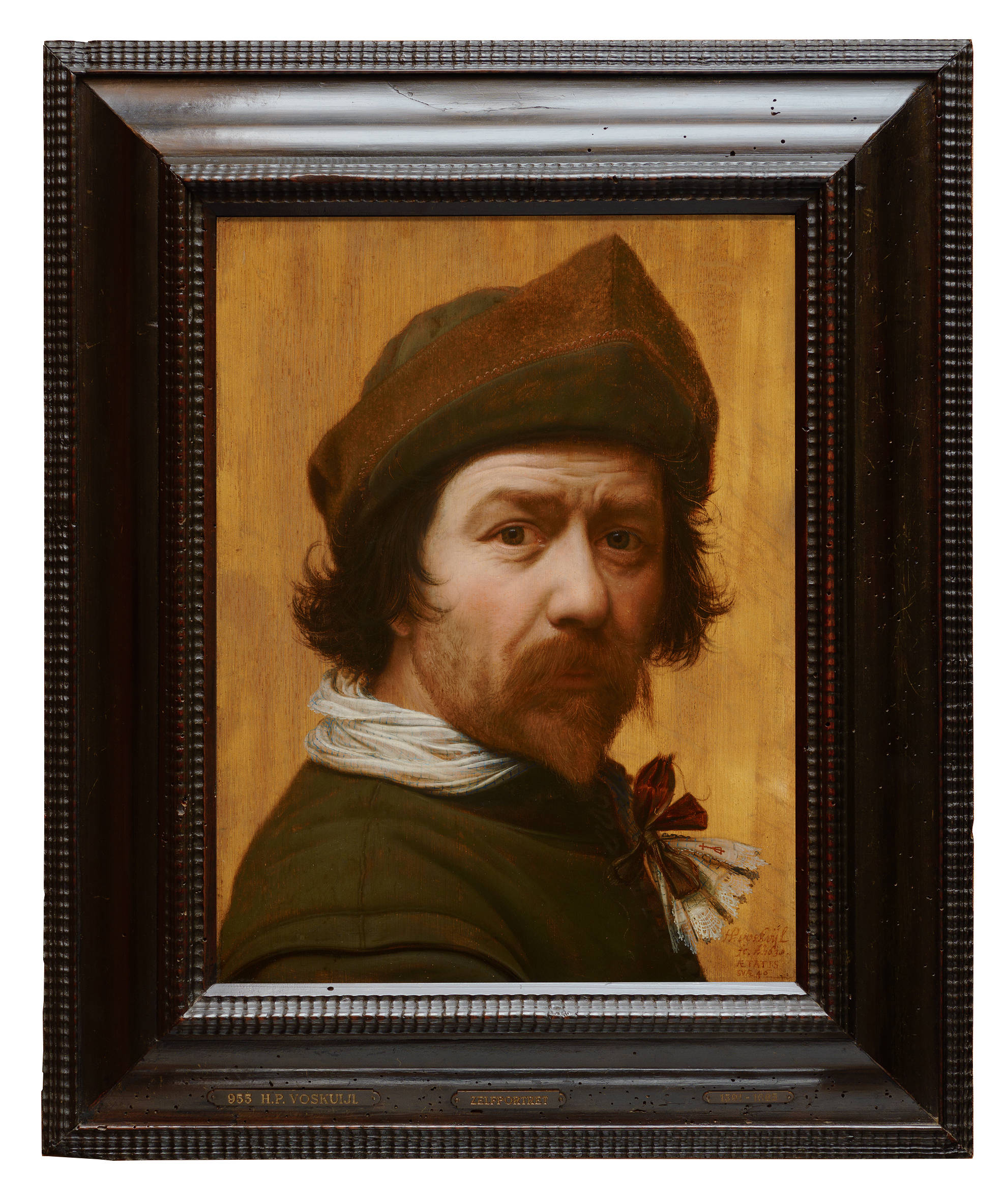 Equally unusual is the wooden wall in the background, which looks especially real with its fine grain. On it, Voskuyl has inscribed his signature and age: forty-six. Only a few paintings by this artist are known, making this self-portrait all the more exceptional.