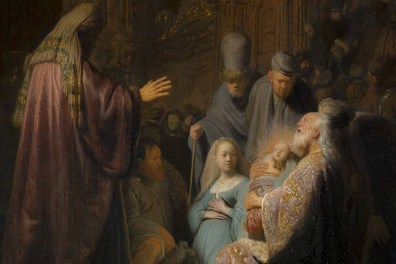 Rembrandt completed The Night Watch in 1642 and for almost ten years after that he produced very few paintings. After that, his style changed. His pictures became calmer, with more focus on subtle poses and movements, like two hands lightly touching each other.