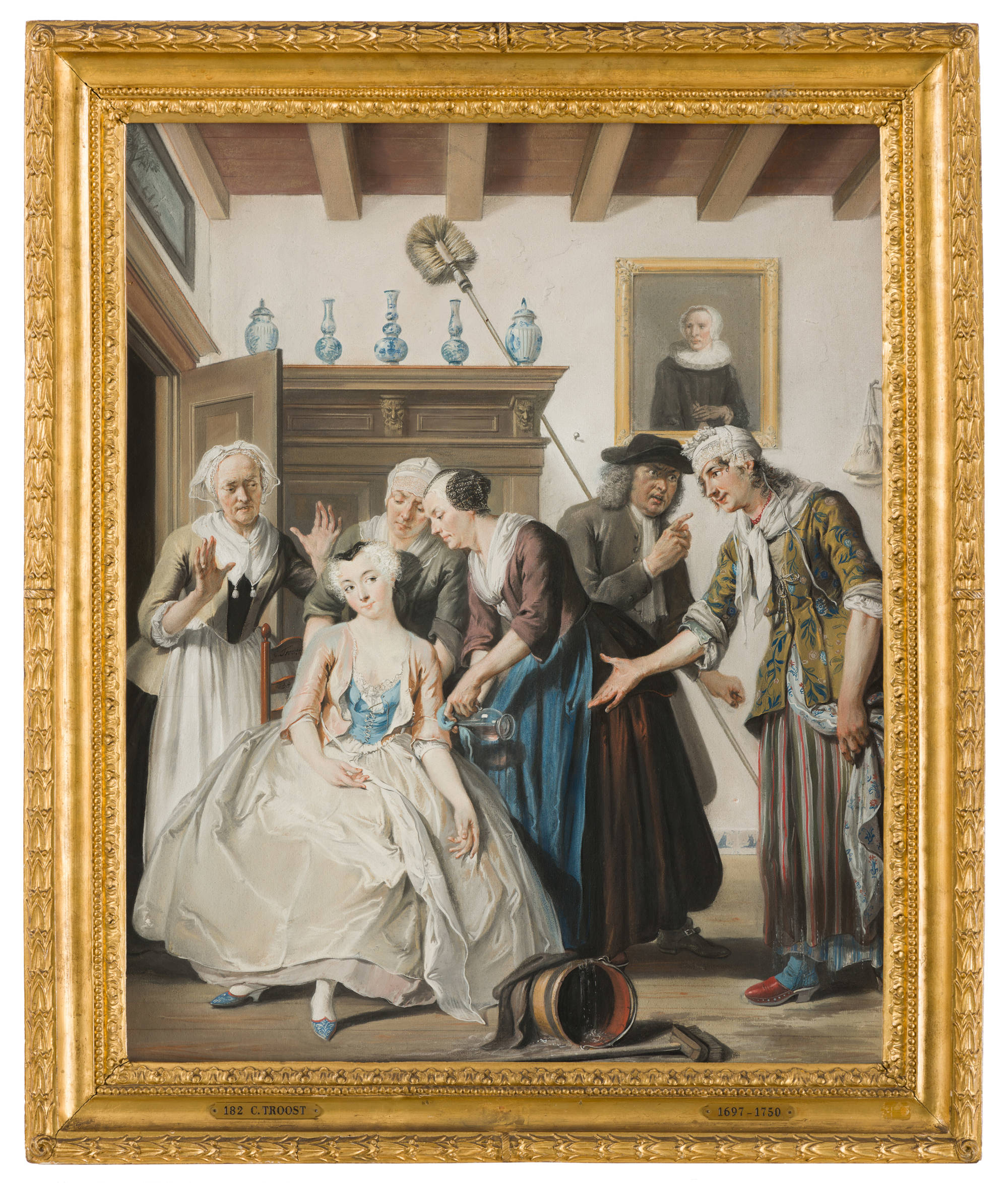Troost painted various scenes from the popular play “Jan Claasz or the Supposed Servant Girl”. The play’s finale is an accumulation of farcical situations.