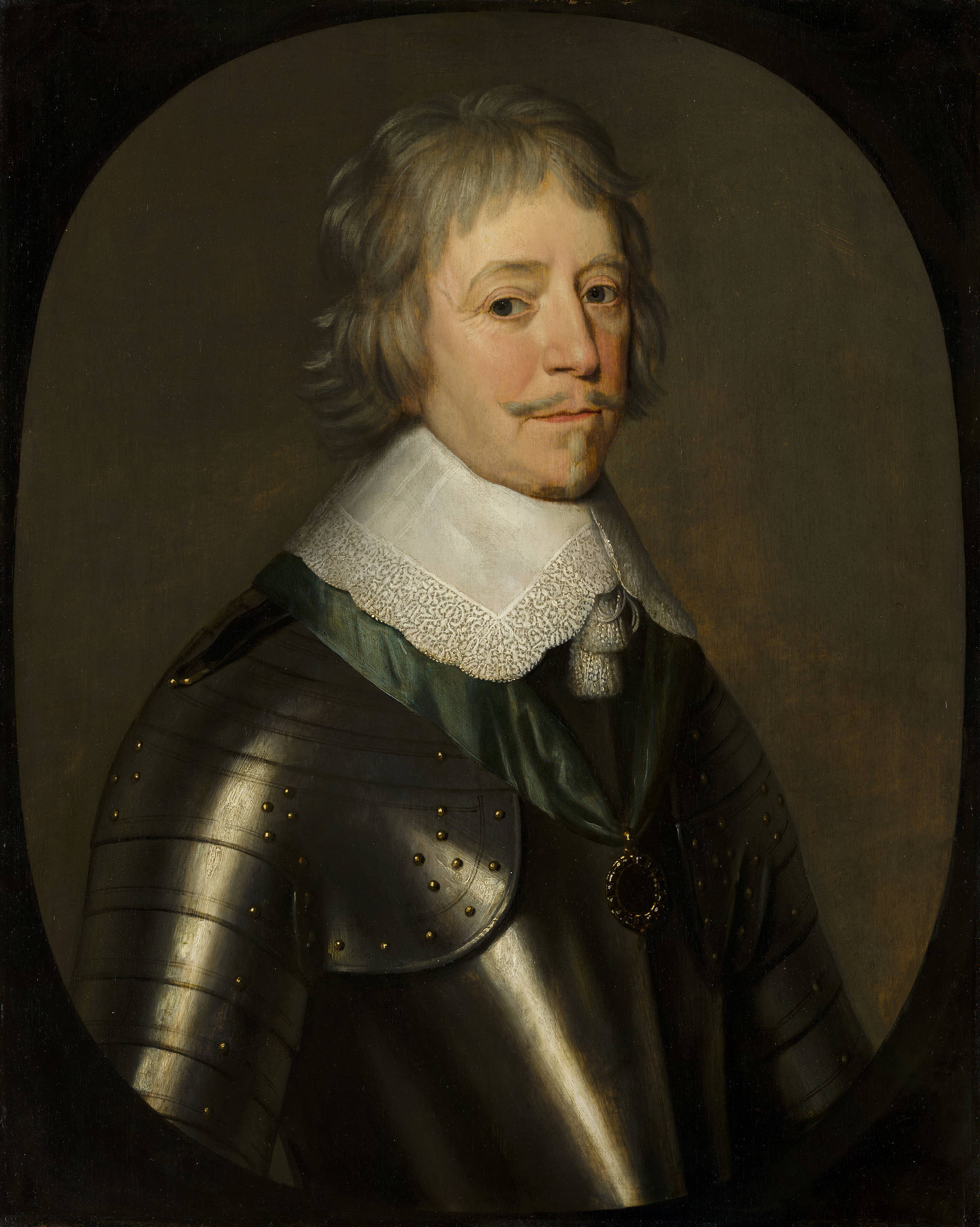 Frederik Hendrik was a second cousin of Johan Maurits. He collected art, including works by Rembrandt. But here he is portrayed as a commander-in-chief of the army.