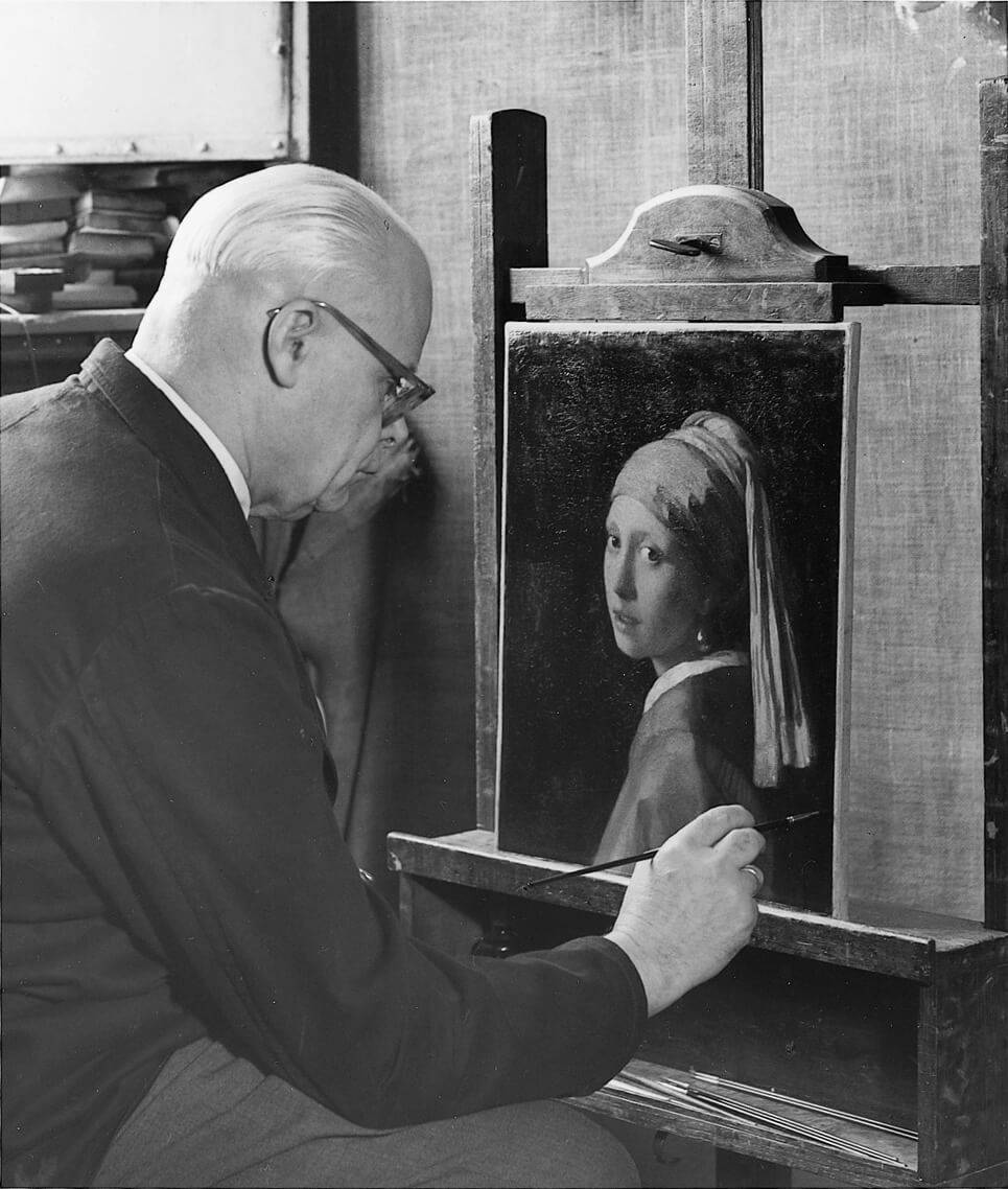 The painting was so dirty and in such poor condition that it was hard to see what it actually was. Despite the poor condition of the painting, De Stuers immediately recognised it as a Vermeer, but kindly agreed not to bid against his buddy Des Tombe at the auction. That meant that Des Tombe could buy it for the bargain basement price of two guilders…plus a 30 cent commission. In today’s money, that’s about 30 euros. After restoration, the signature ‘IVMeer’ was revealed, and it was recognised as a work by Johannes Vermeer.