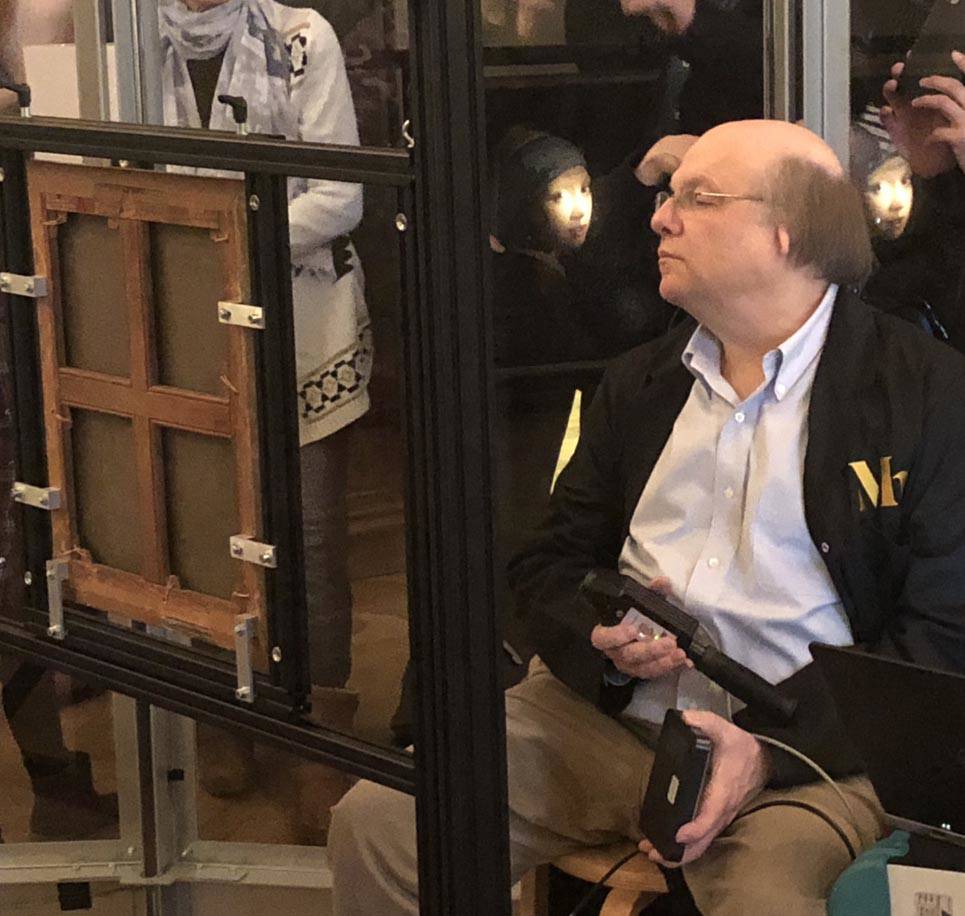 Working within a plexiglass enclosure in front of the public took some getting used to, but we loved seeing the reactions of the museum public. No-one seemed to be disappointed that they couldn’t see the Girl hanging in her usual spot. On the contrary, the museum visitors gazed into the glass enclosure for long periods of time, and some came back every day to watch the progress of the research.