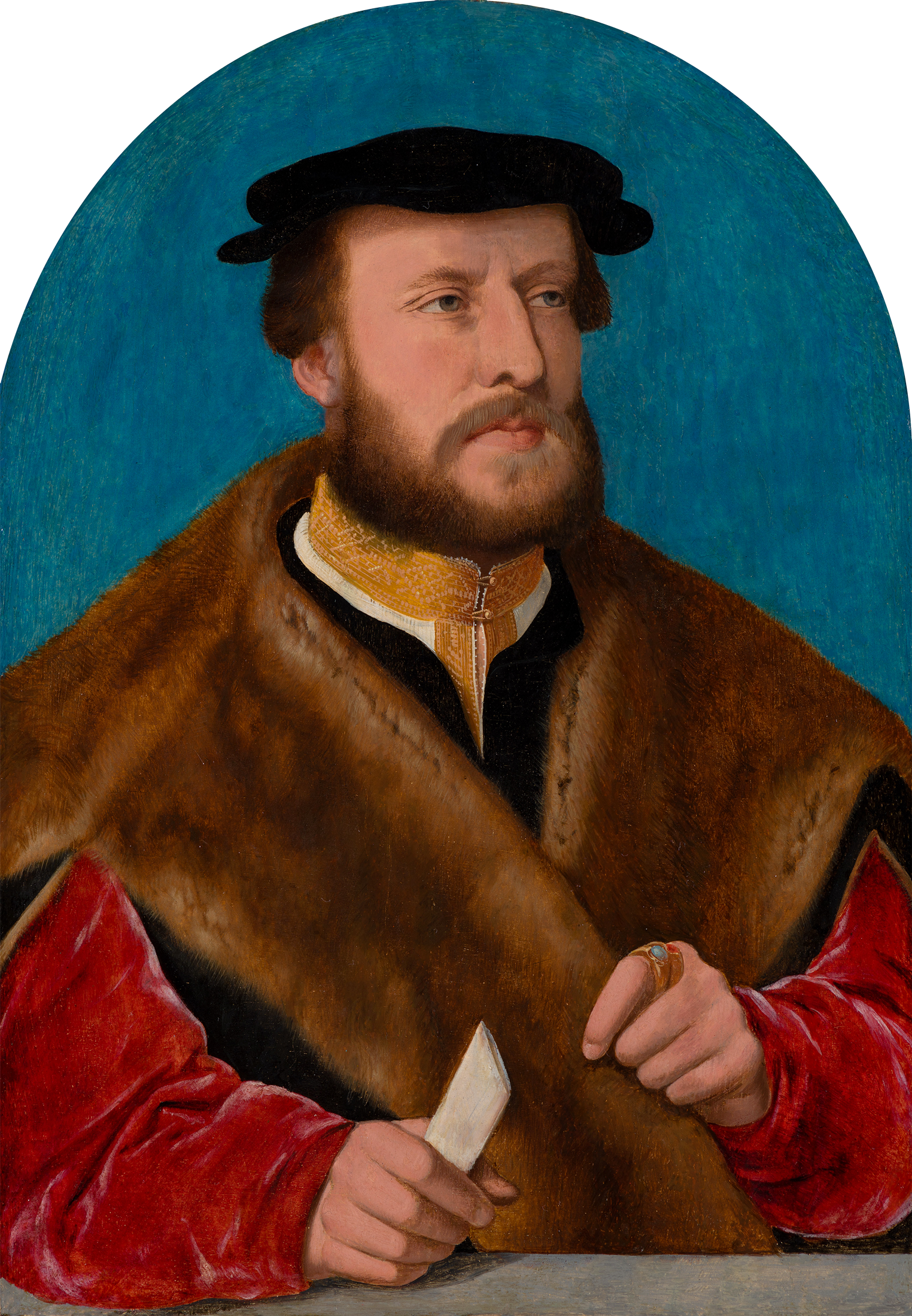 Bartholomäus Bruyn the Elder (1493-1555), known as ‘the Elder’ because his son of the same name also became a painter, was in great demand as a portrait painter – an entire generation of Cologne dignitaries was painted by him. Characteristic of his portraits are the lifelike details in the faces and hands, the use of vivid colours and the meticulous rendering of clothing and props. Bruyn received very few commissions for independent portraits – his output consisted mainly of engagement and marriage portraits in the form of diptychs.