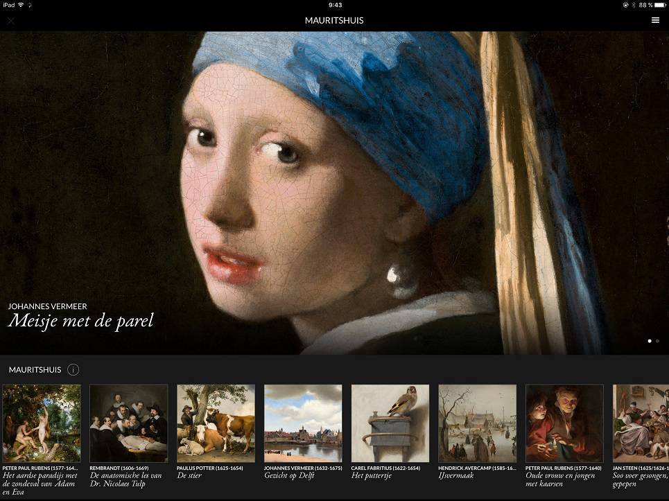 The Mauritshuis is home to the Best of Dutch painting from the Golden Age. The compact, yet world-renowned collection, is situated in the heart of The Hague, right next to the government centre. Masterpieces such as Vermeer's Girl with a Pearl Earring, The Anatomy Lesson of Dr. Nicolaes Tulp by Rembrandt, The Goldfinch by Fabritius and The Bull by Potter are on permanent display in the intimate rooms of this seventeenth-century monument. More than two hundred top works from Dutch and Flemish masters are on display in the historic yet intimate interior, with its silken wall covering, sparkling chandeliers and monumental painted ceilings. Genre paintings by Jan Steen, landscapes by Jacob van Ruisdael, still lifes by Adriaen Coorte and portraits by Rubens offer a rich and varied representation of the best of seventeenth-century Dutch and Flemish painting.