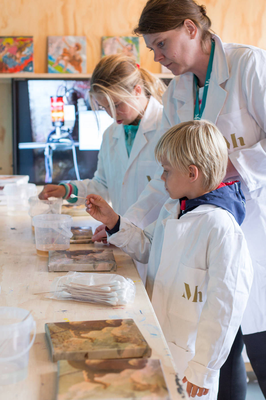 Visit the Mauritshuis, put on a white jacket and become an art doctor yourself! Discover special stories about famous paintings and get to work as a restorer in the Art Workshop. During the workshop, you will first explore. You take a close look at a painting. Then you make your own tools: a very special cotton bud for example. You then use this to remove a layer of varnish from a painting. Finally, you get to repaint the painting, as real as possible or with lots of imagination.