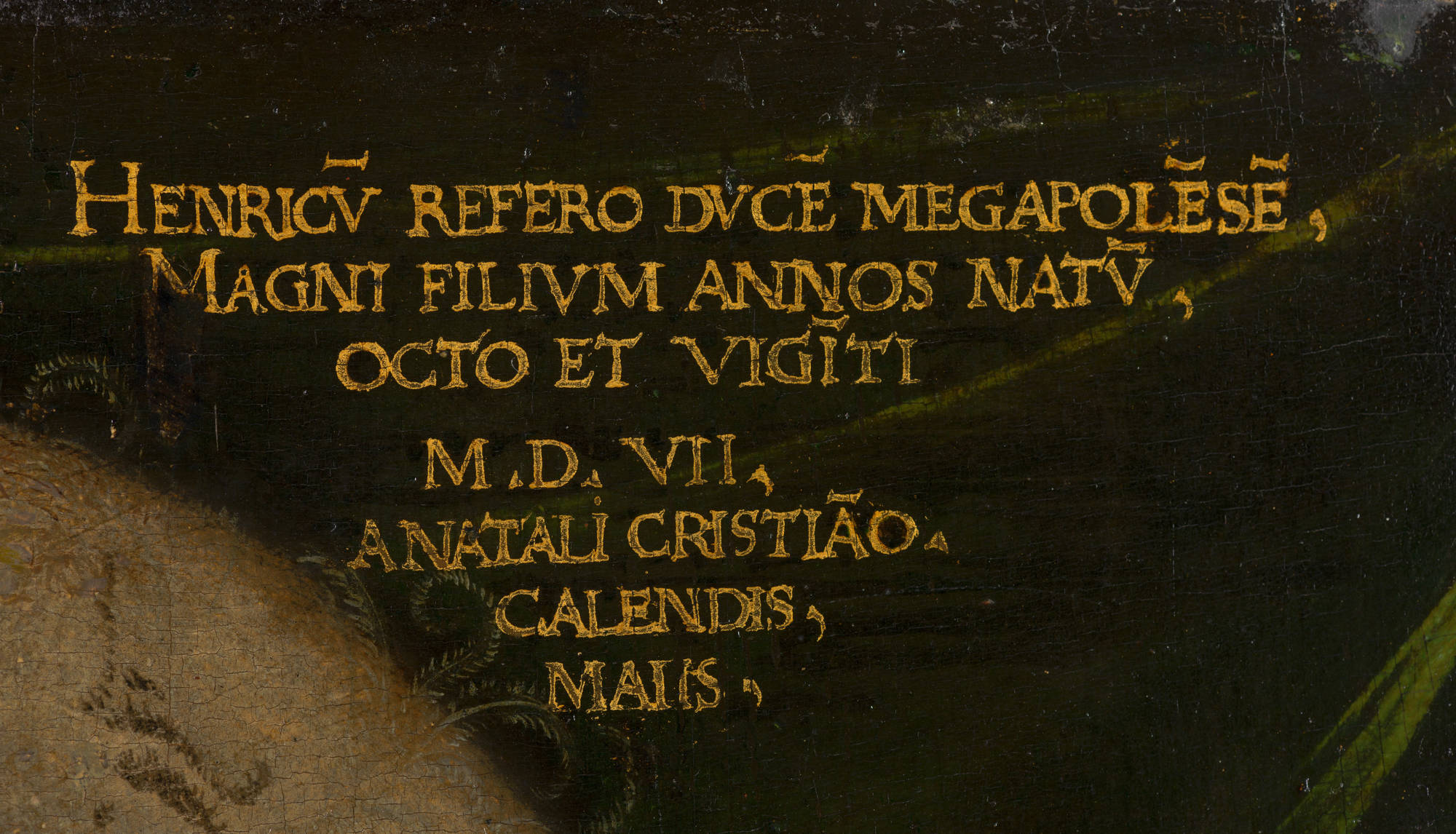 upper right: HENRICV REFERO DVCE MEGAPOLESE, / MAGNI FILIVM ANNOS NATV, / OCTO ET VIGITI / M.D.VII, / ANATALICRISTIAO / CALENDIS, / MAIIS