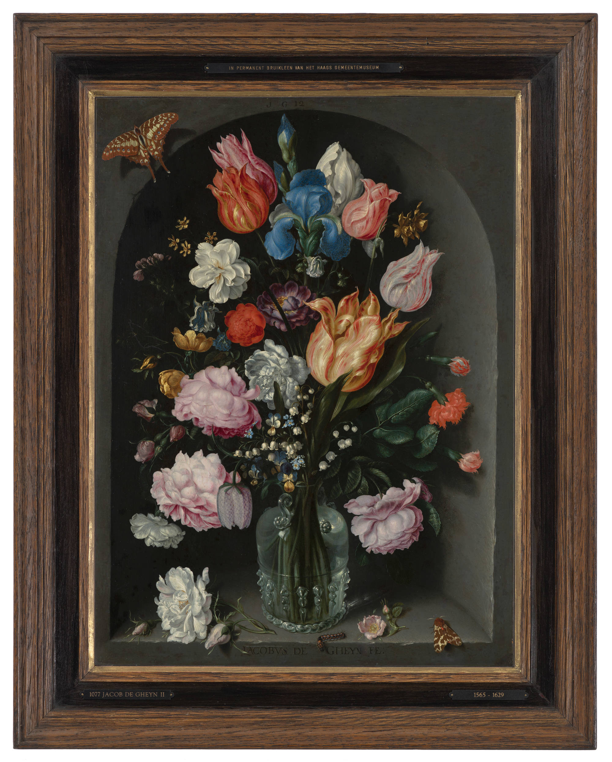 De Gheyn, a painter from The Hague, may have been the first Dutch master to paint a still-life of only flowers, shortly after 1600. He made this painting over ten years later. It shows a profuse bouquet of many different flowers.