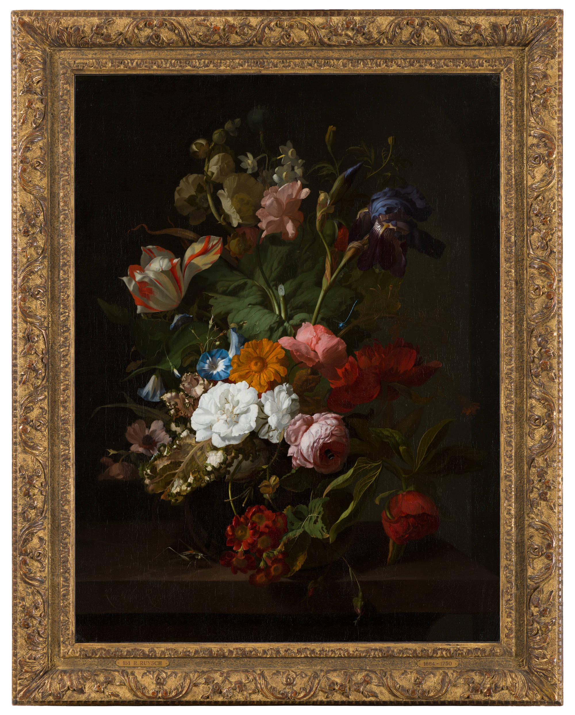 Not surprisingly, Ruysch was a phenomenon in her time. The fact that as a woman she possessed such remarkable skills was cause for wonderment, all the more so because in addition to producing many dozens of paintings, Ruysch also bore ten children, each and every one of whom she had raised herself, as she noted with pride. Moreover, she continued working to a ripe old age and was still painting at 84, two years before her death. This only fuelled the admiration she aroused among her contemporaries.