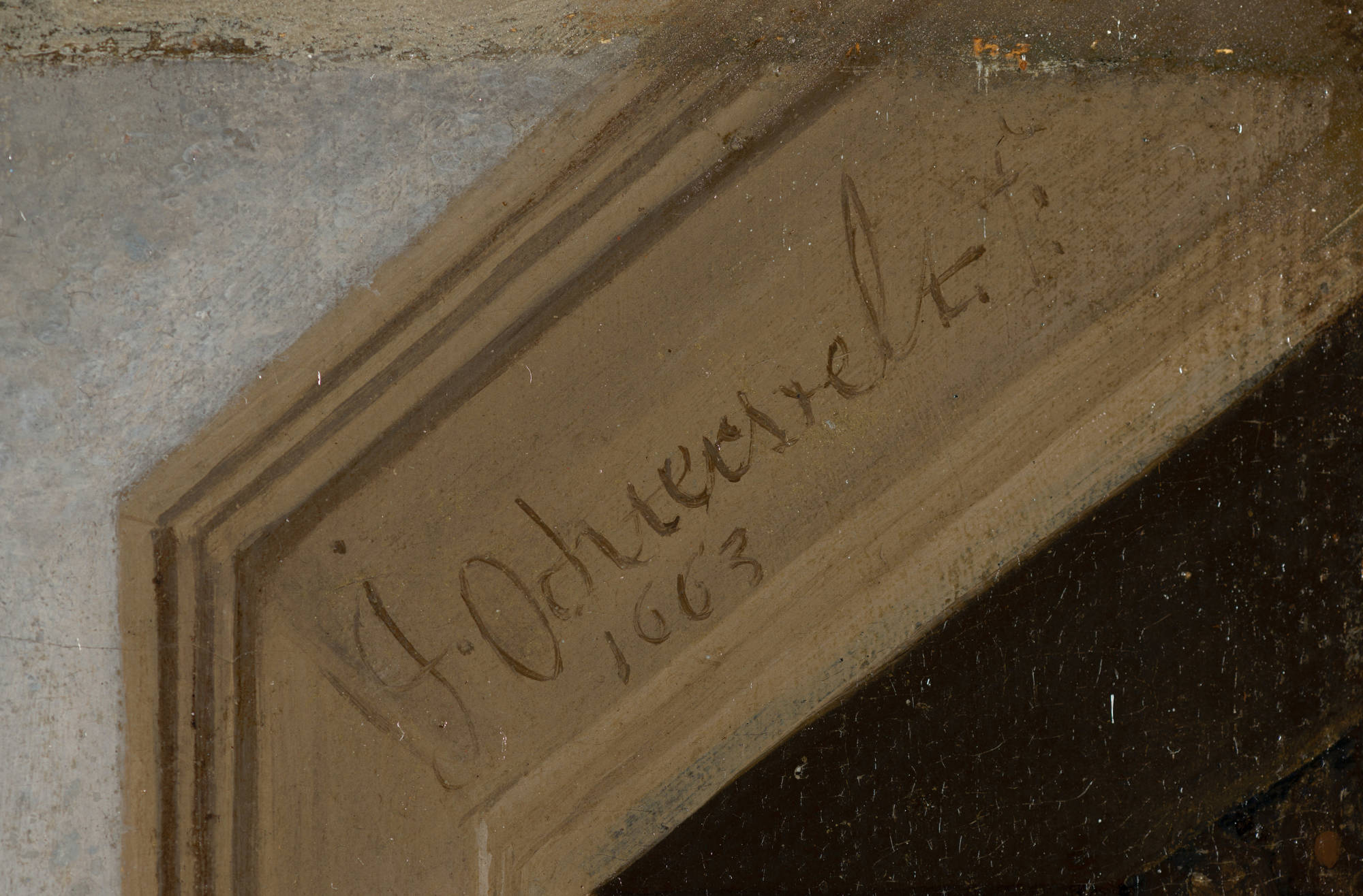 top right, on the door post: J. Ochtervelt.f: / 1663