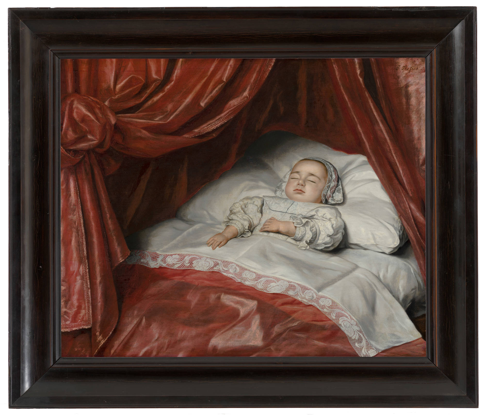 It looks as if the beautiful girl lying so peacefully is asleep. But she will never wake up again, as she has passed away. Her parents had her likeness painted by Thopas, whose other known works are all portrait drawings. This sad painting is one of the most beautiful and intimate deathbed portraits of a child. It remained in her family’s possession for over 300 years.