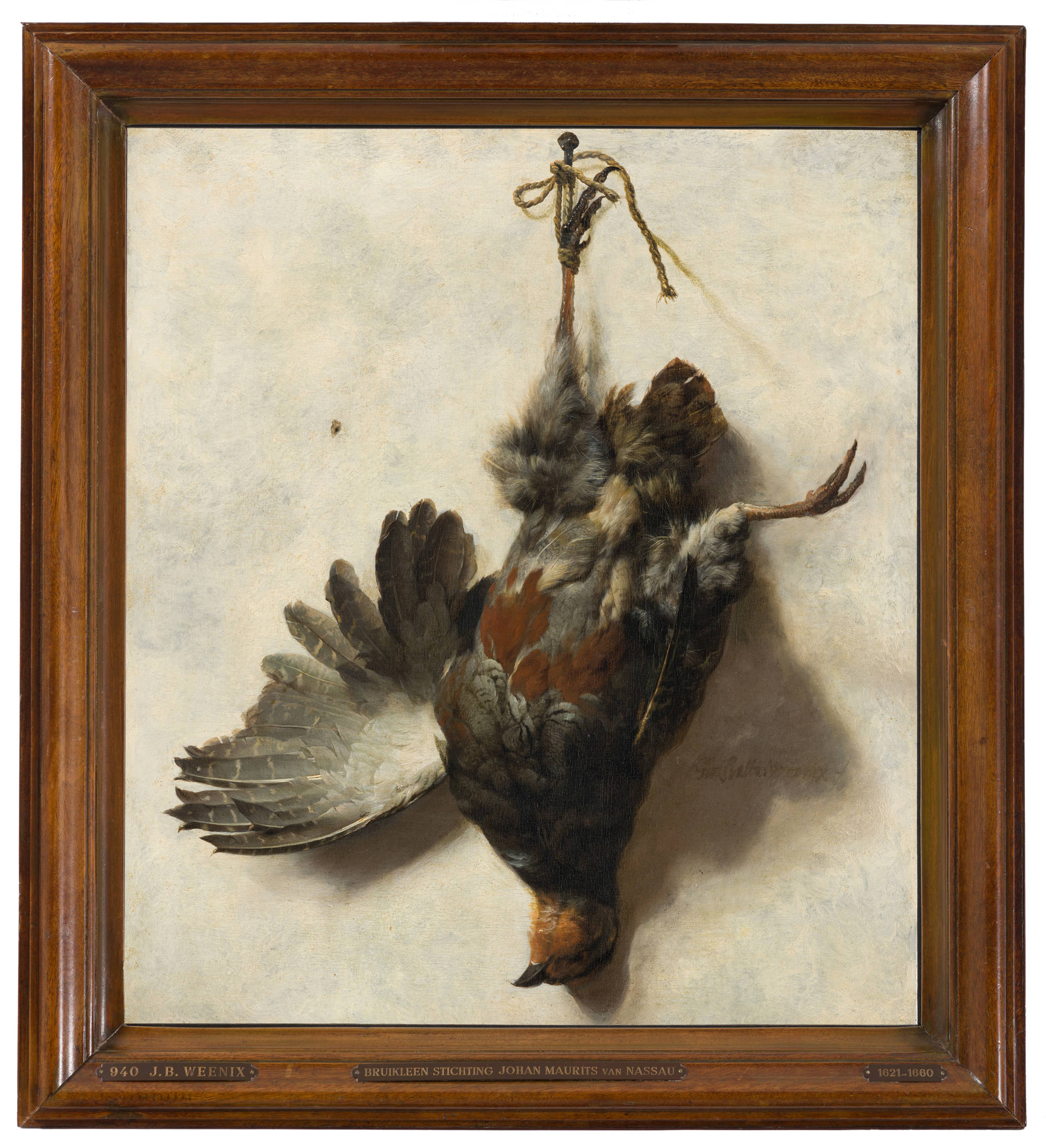 This type of deceptive painting, or trompe-l’oeil, was very popular in the mid-seventeenth century. This example is by Weenix, who is known mainly for his impressive Italian landscapes.