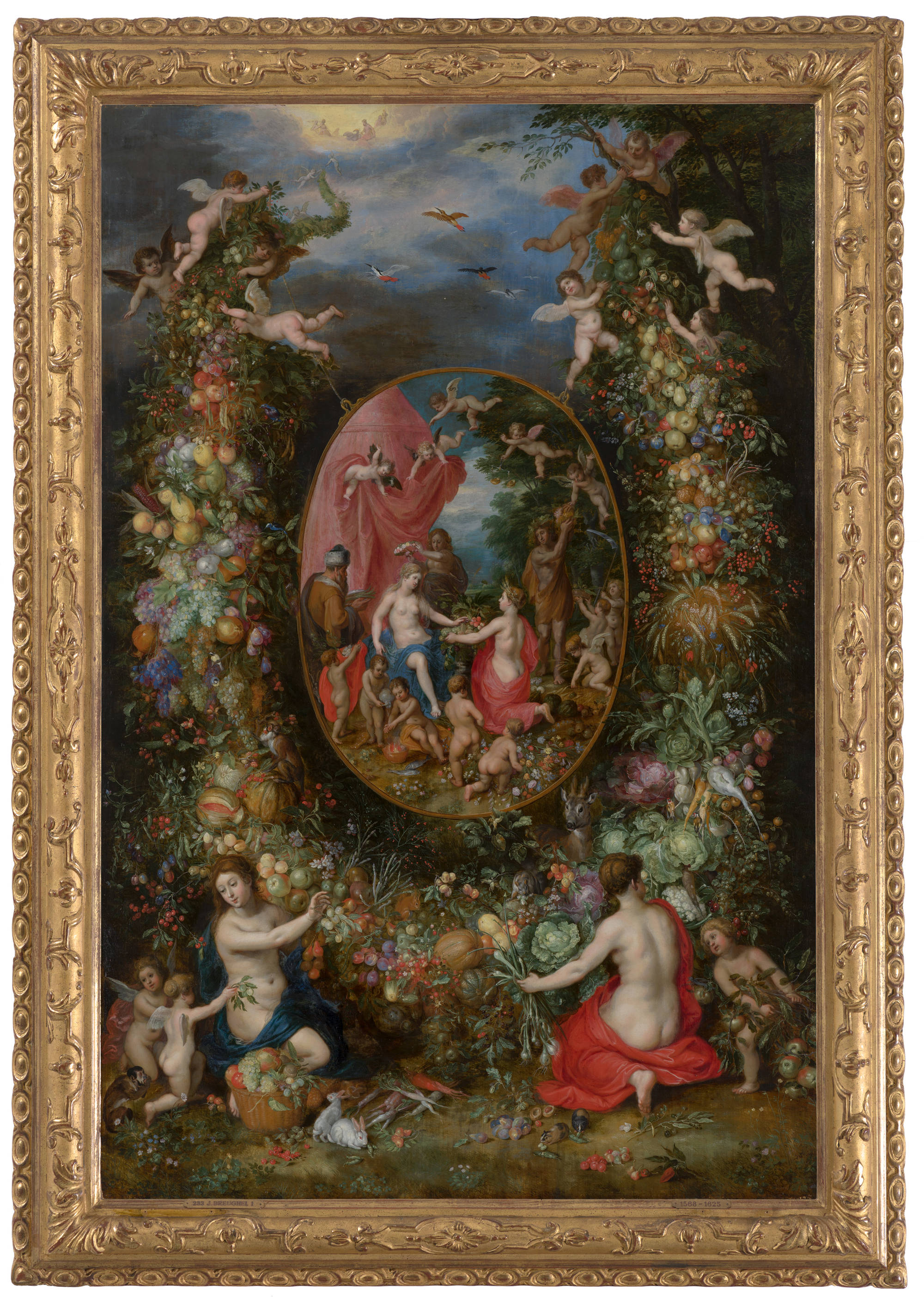 Garland of Fruit surrounding a Depiction of Cybele Receiving Gifts from Personifications of the Four Seasons