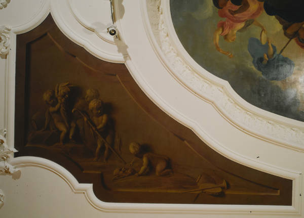 Geschilderd voor Rapenburg 48 in Leiden, de woning van Diederik van Leyden van Vlaardingen (samen met inv. nrs. 731-734); aankoop, 1910; geïnstalleerd in het plafond van de Potter Zaal, 1912