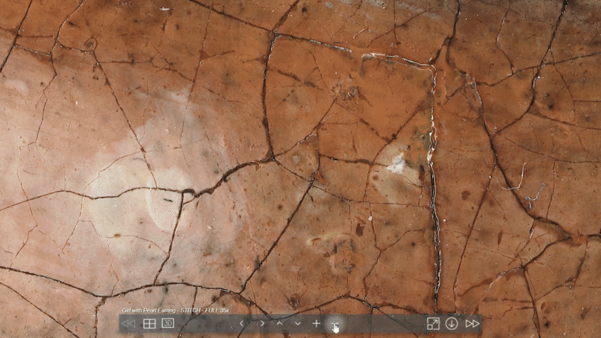 Grote kans dat jij al eens verdronk in de ogen van het Meisje met de Parel. Met een beetje geluk kon je tot ongeveer 1 meter bij haar in de buurt komen. Trof je haar op een slecht moment? Dan stond je achter andere bezoekers in de hoop een glimp op te vangen. Er is een plek online waar je een scan bestaande uit wel 10 miljard pixels aantreft. Deze scan maakten we met een Hirox microscoop tijdens het uitgebreide onderzoek naar Vermeers Meisje met de Parel. Wacht niet langer en ontdek dat kloddertje verf op haar lip of spoor de kwasthaartjes van Vermeer op!
