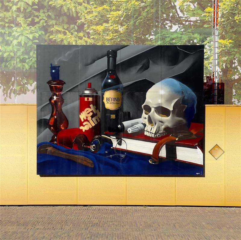 Kunstenaar BEYOND liet zich inspireren door Vanitas-stilleven van Pieter Claesz in het Mauritshuis.