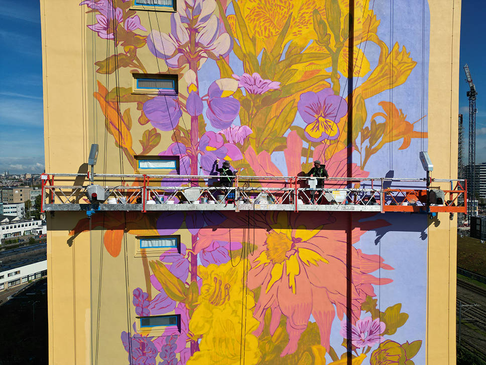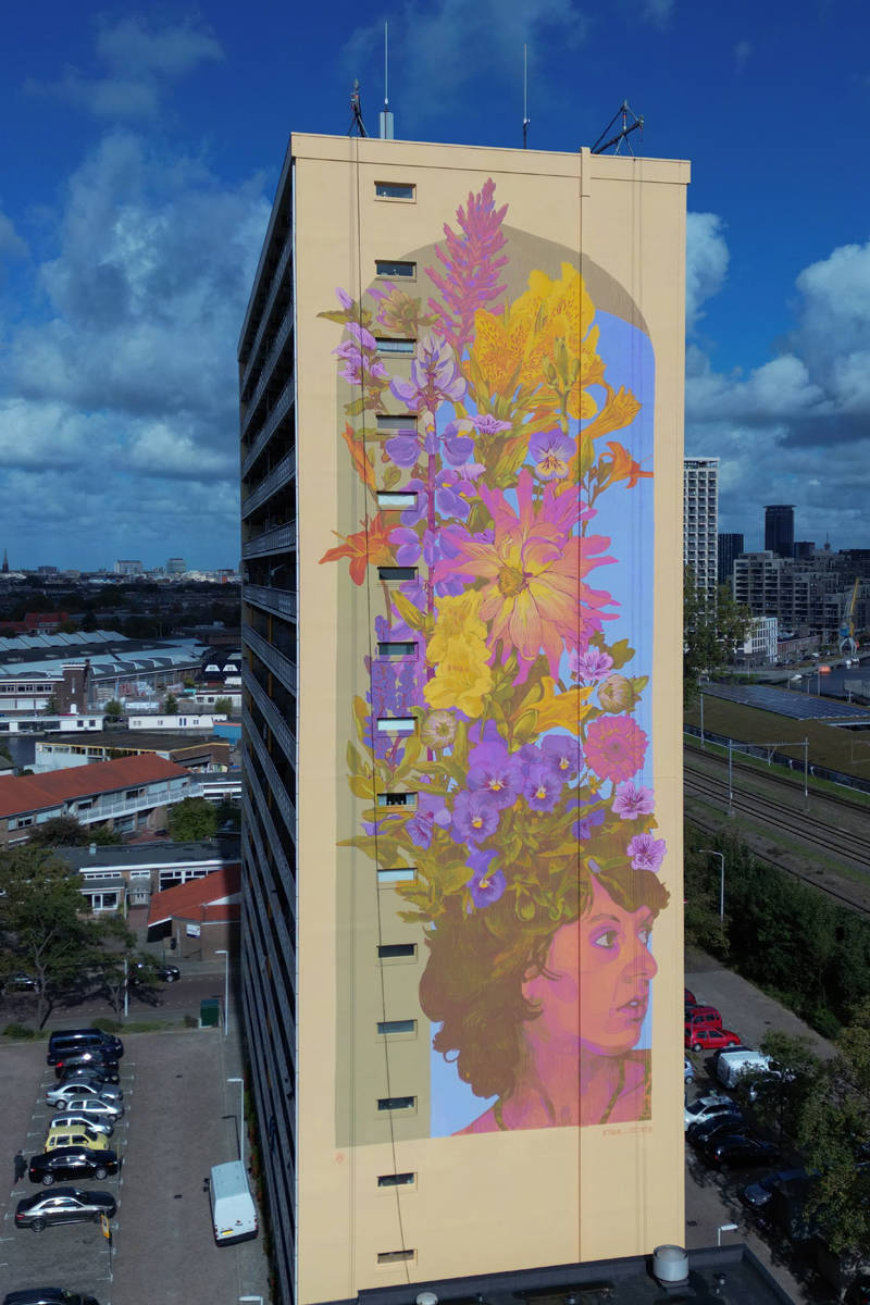 Op een muur van maar liefst 700m2 groot aan de Troelstrakade (Willem Dreespark) in Moerwijk laat zij bloemen uit verschillende landen en tijden bloeien. Het is één van de grootste muurschilderingen van Nederland!