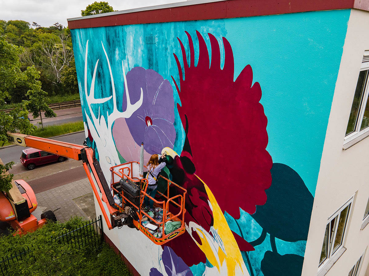 Nina Valkhoff: 'Ik vind het zelf visueel aantrekkelijk, maar ik wil ook graag mensen met mijn street art schilderingen verblijden.'