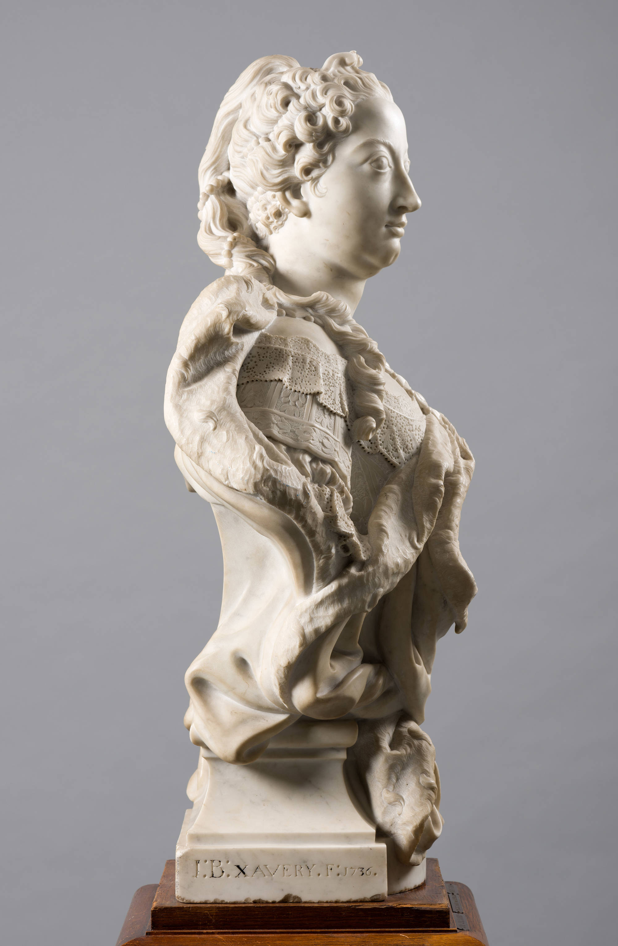 Xavery was een Antwerpse beeldhouwer die in 1721 in Den Haag neerstreek en hofschilder werd. In 1736 maakte hij dit borstbeeld van prinses Anna van Hannover, dochter van koning George II van Engeland en echtgenote van stadhouder Willem IV. Een paar jaar eerder had Xavery ook van hem een borstbeeld gemaakt – het staat elders in deze zaal.