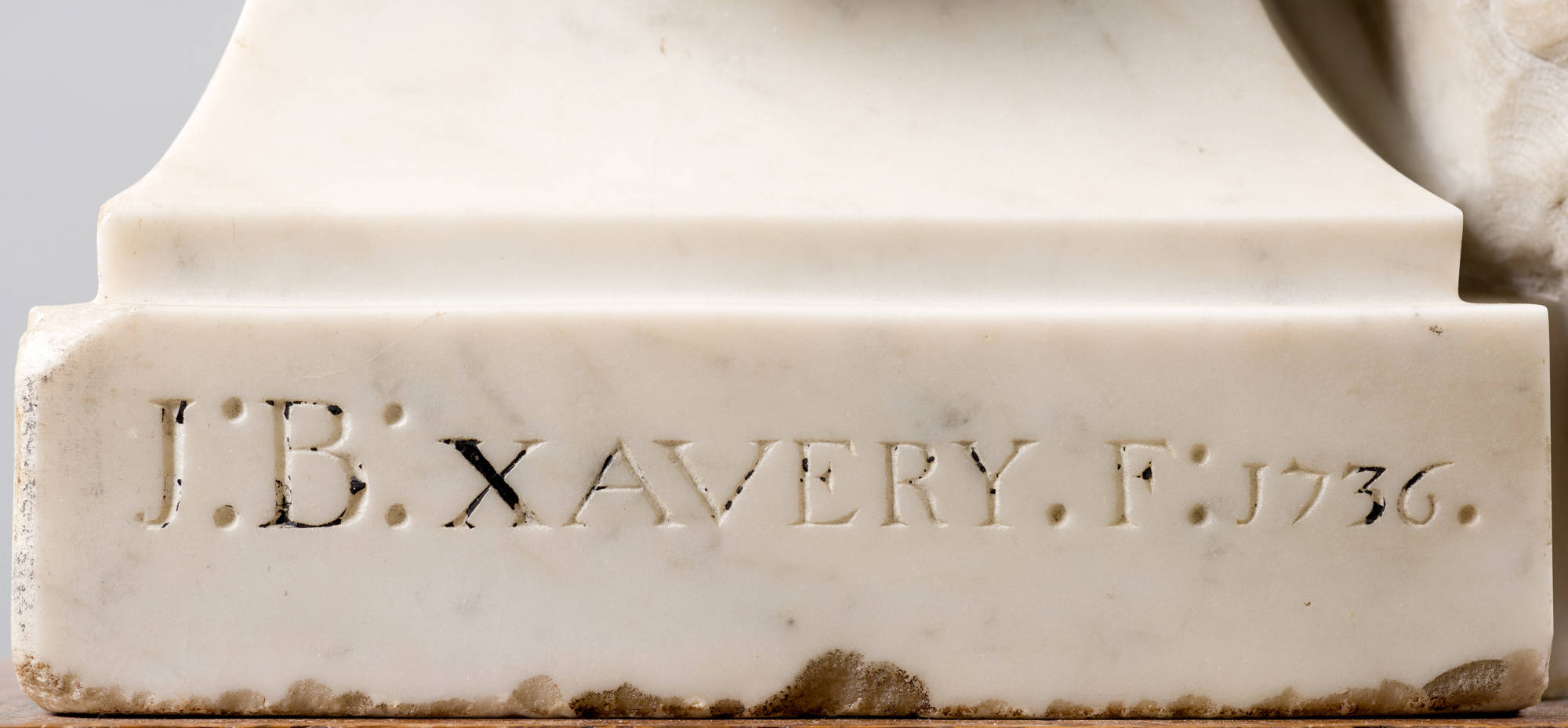 op de linkerzijde van het voetstuk: J: B: XAVERY. F: 1736.