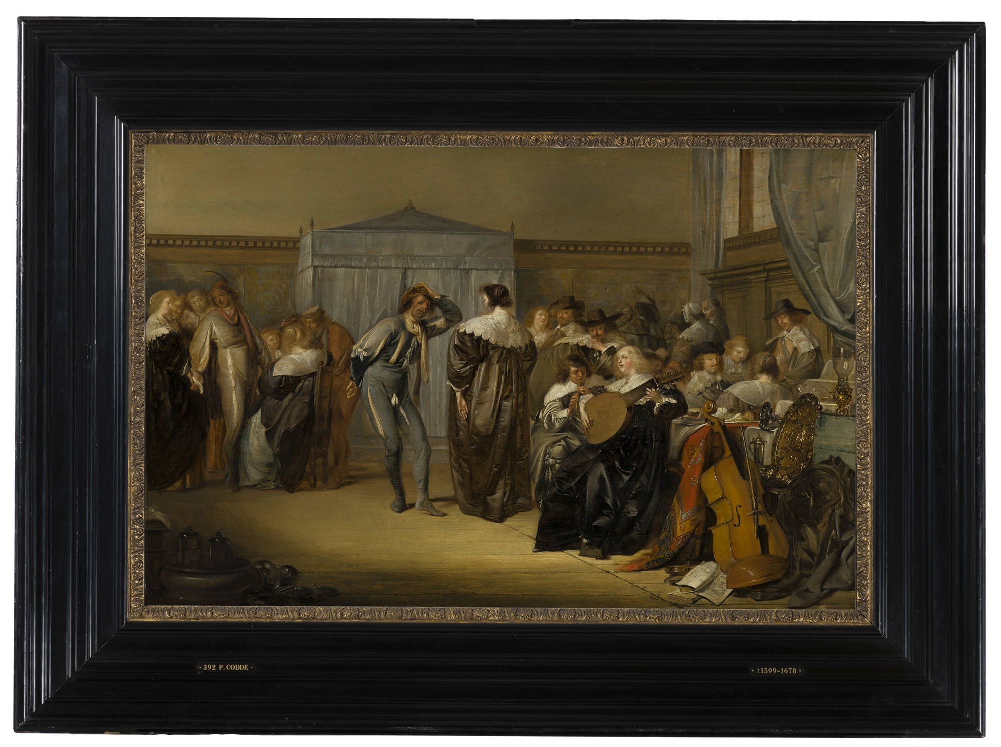 Voorstellingen van elegante, feestende jongelui – ‘gezelschapjes’ – waren aan het begin van de 17de eeuw erg populair. De Amsterdammer Pieter Codde is een van de schilders, die zich specialiseerden in dit genre.