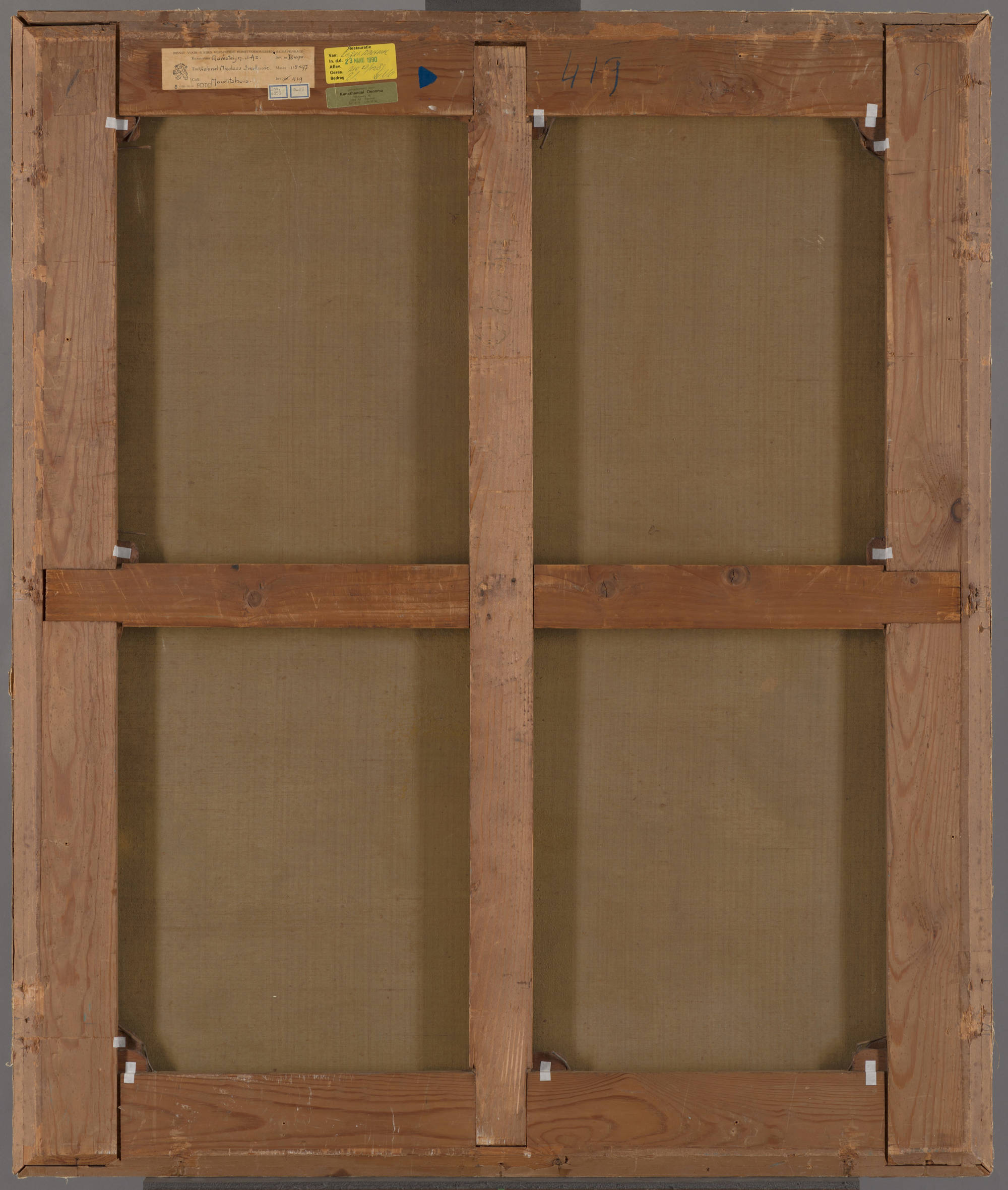 Paleis Honselaarsdijk, Naaldwijk, in of vóór 1694; Nationale Konst-Gallery, Den Haag, 1804-1805; Nationaal Kabinet (Koninklijk Museum), ‘Besoigne- Kamer’ en de Schilderijen Galerij van prins Willem V, Den Haag, 1805-1821; overgedragen, 1822; in langdurig bruikleen aan het Legermuseum, Delft, 1968-2014 (dit bruikleen verliep via de Rijksdienst voor het Cultureel Erfgoed, tot 2013); in langdurig bruikleen aan het Nationaal Militair Museum, Soest, sinds 2017