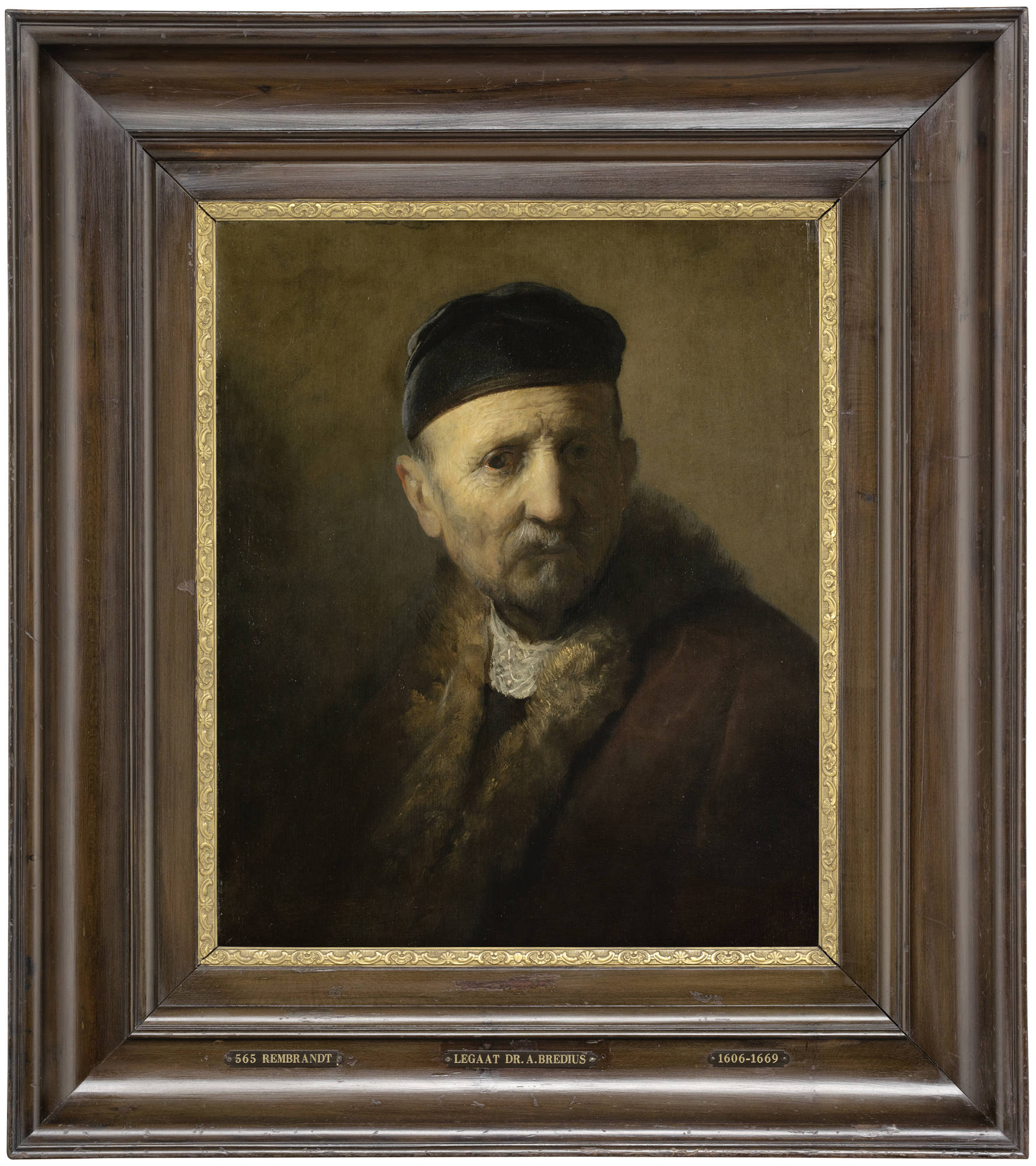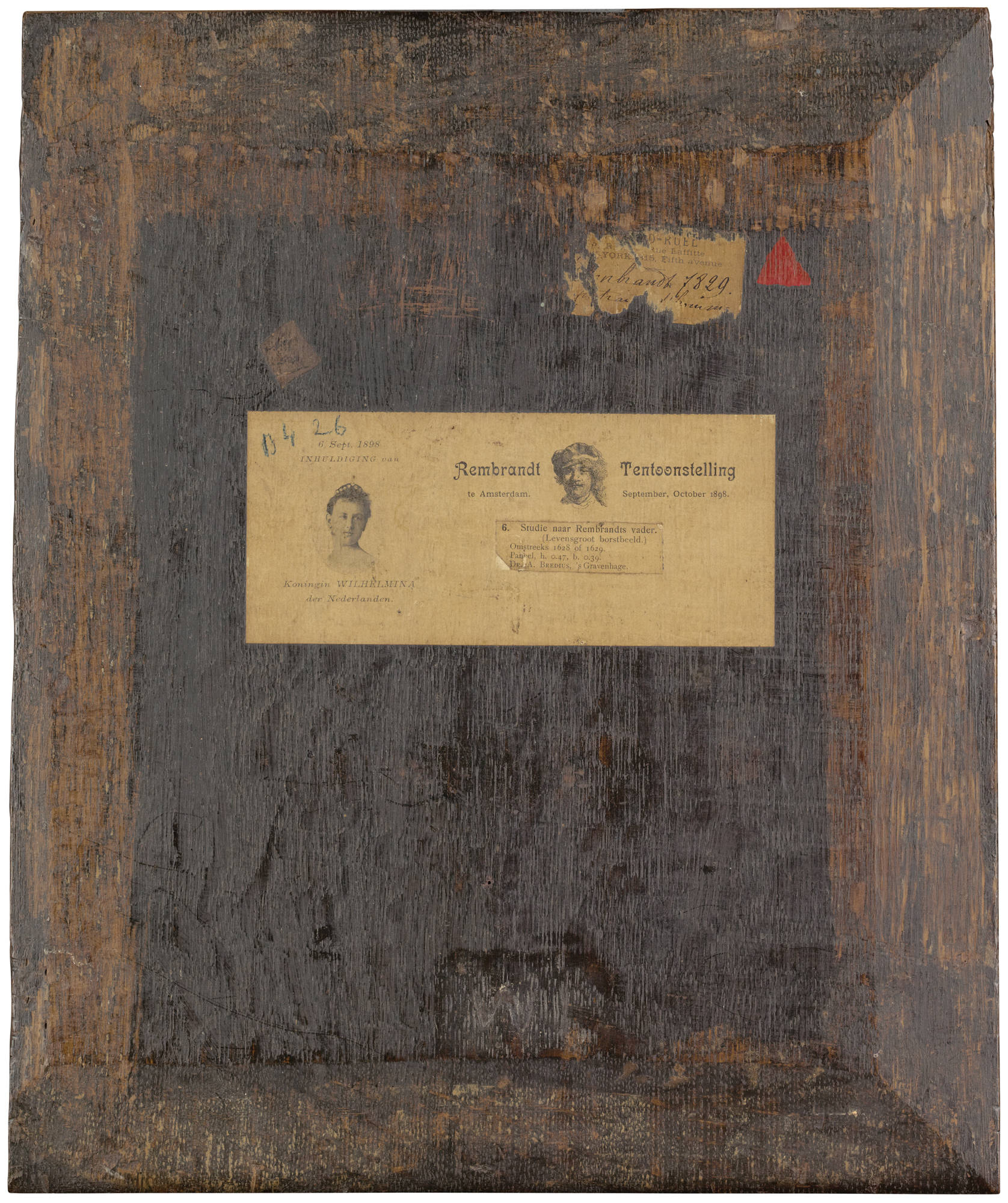 Dit is een tronie, een studie van een karaktervolle, oude mannenkop. Het schilderij werd aan het eind van de negentiende eeuw gekocht als een portret van Rembrandts vader Harmen Gerritsz van Rijn. Inmiddels betwijfelen we of dit werkelijk Rembrandts vader is en ook de toeschrijving aan Rembrandt is onzeker. Mogelijk dat toekomstig onderzoek daar meer over kan uitwijzen. Voorlopig staat er daarom nog een vraagteken achter Rembrandts naam.