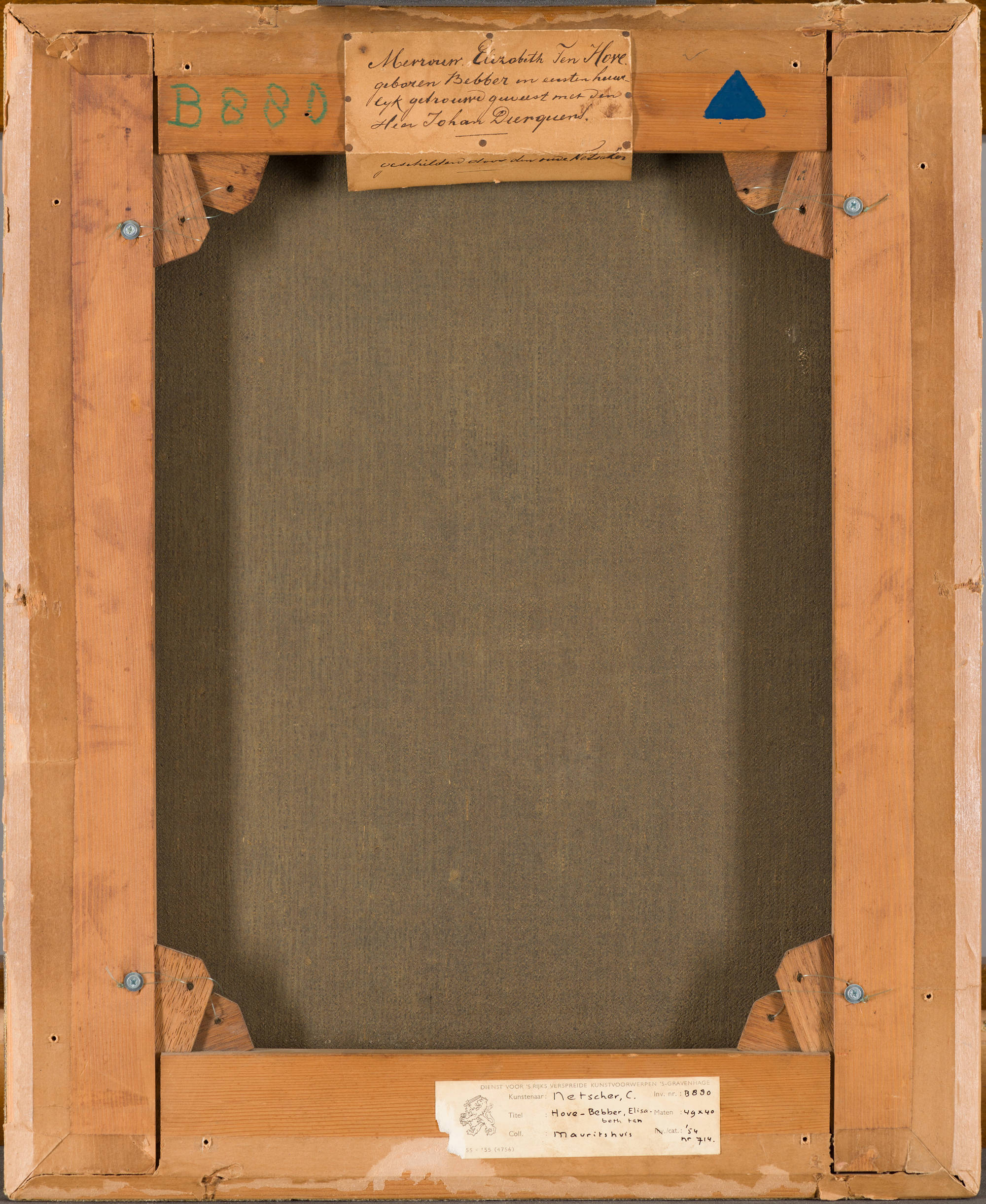Vermoedelijk Michiel ten Hove en erven, tot 1907; legaat van jonkvrouw Maria Johanna Singendonck, Den Haag, 1907