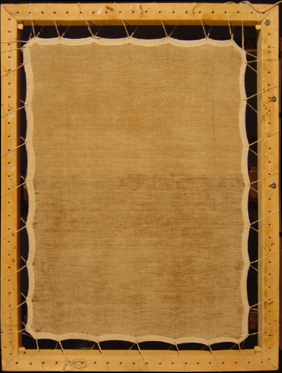 Wat is de eerste stap om van een doek een drager te maken die geschikt is voor een schilderij? Allereerst wordt het linnen voorbewerkt met een grondering: de grondlaag. Zonder grondering zou het doek de verf absorberen en zou het oppervlak te grof zijn om op te kunnen schilderen.