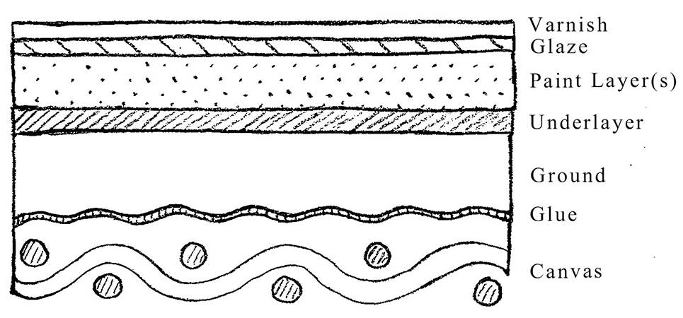 Het Meisje met de parel bestaat – zoals de meeste zeventiende-eeuwse schilderijen – uit verschillende lagen: materialen die na elkaar zijn toegevoegd, het ene bovenop het andere. Ik bespreek elke laag in een apart blog: doek, grondering, verflagen, glacis en vernis.