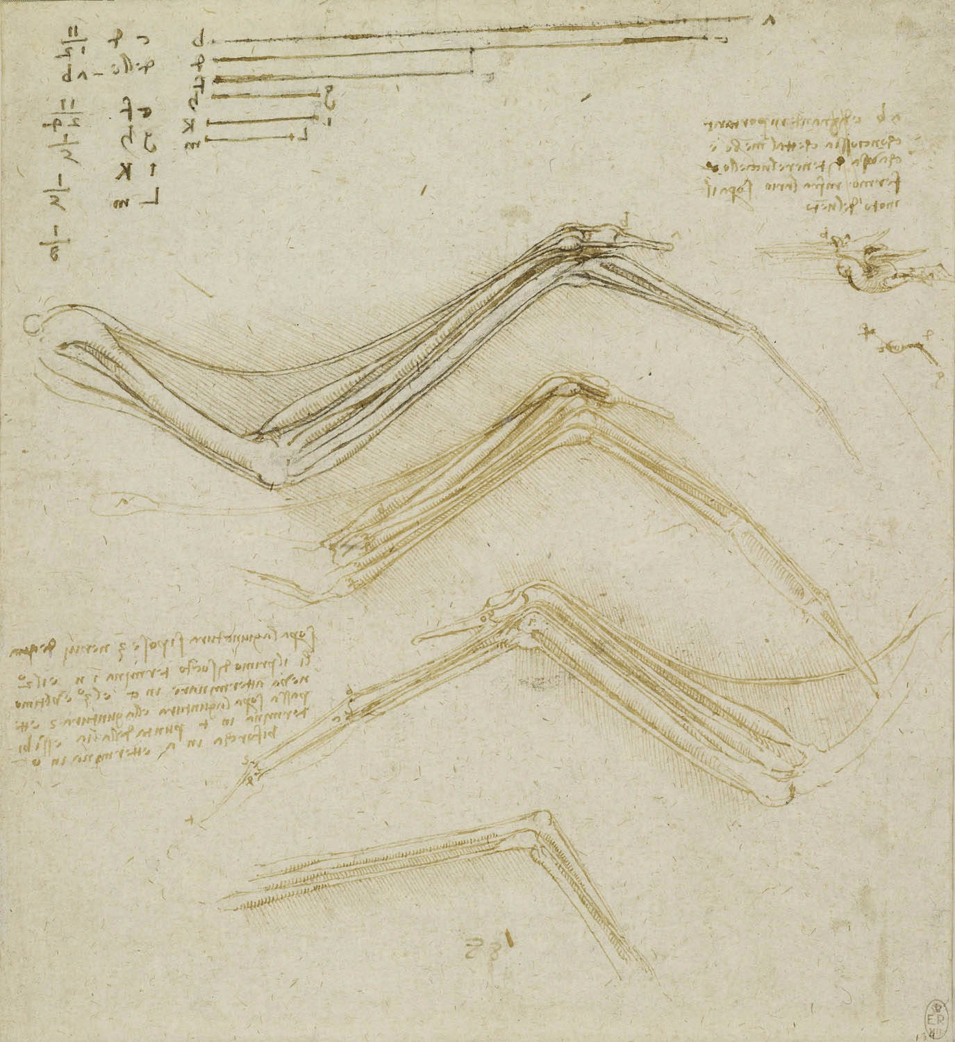 Het bestuderen van de vogelvlucht was voor Leonardo da Vinci (1452-1519) een opstap om te bedenken hoe de mens zou kunnen vliegen. In BIRDS zijn twee originele documenten van zijn hand te zien, geleend uit de Britse Royal Collection: notities over de vogelvlucht (1511-1513) en een tekening van een vogelvleugel (ca. 1512).