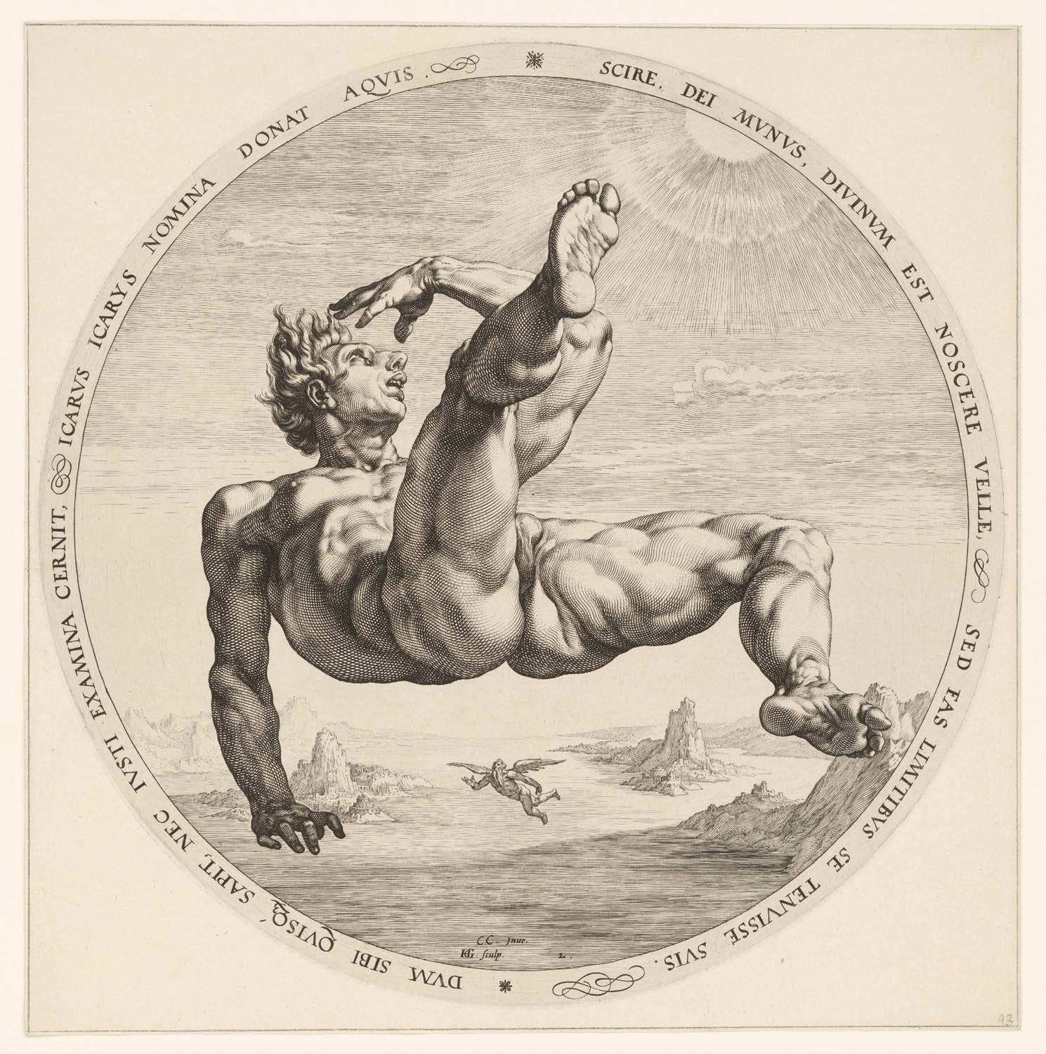 Eeuwenlang worden vogels door mensen benijd omdat ze iets kunnen waartoe wij mensen niet in staat zijn: vliegen. Van de talloze afbeeldingen van Icarus die te dicht bij de zon vliegt en daarvoor een prijs betaalt (hij stort naar beneden), is Hendrick Goltzius’ vrije val misschien wel de meest verbluffende (Icarus, 1588 – beeld). Henri Matisse (1869-1954) gaf een eigen interpretatie van het verhaal van Icarus. Hij werkte aan deze prent tijdens de Tweede Wereldoorlog en plaatste de vallende figuur tussen exploderende bommen.