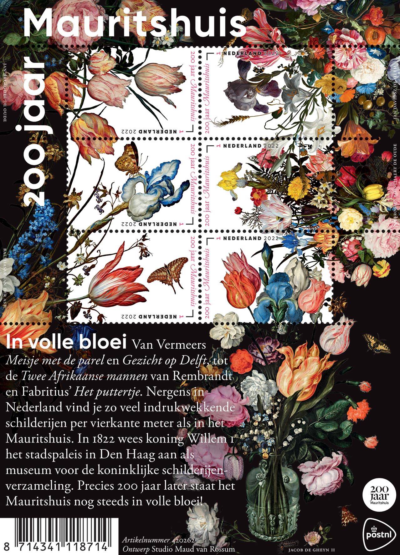 Het postzegelvel 200 jaar Mauritshuis telt zes verschillende postzegels met de waarde aanduiding Nederland 1, bedoeld voor post tot en met 20 gram met een bestemming binnen Nederland. De postzegels zijn vanaf 21 februari verkrijgbaar in de winkel van het Mauritshuis (museum en webshop), bij de Bruna-winkels en via www.postnl.nl/bijzondere-postzegels. De postzegels zijn ook telefonisch te bestellen bij de klantenservice van Collect Club op telefoonnummer 088 - 868 99 00. De geldigheidstermijn is onbepaald.