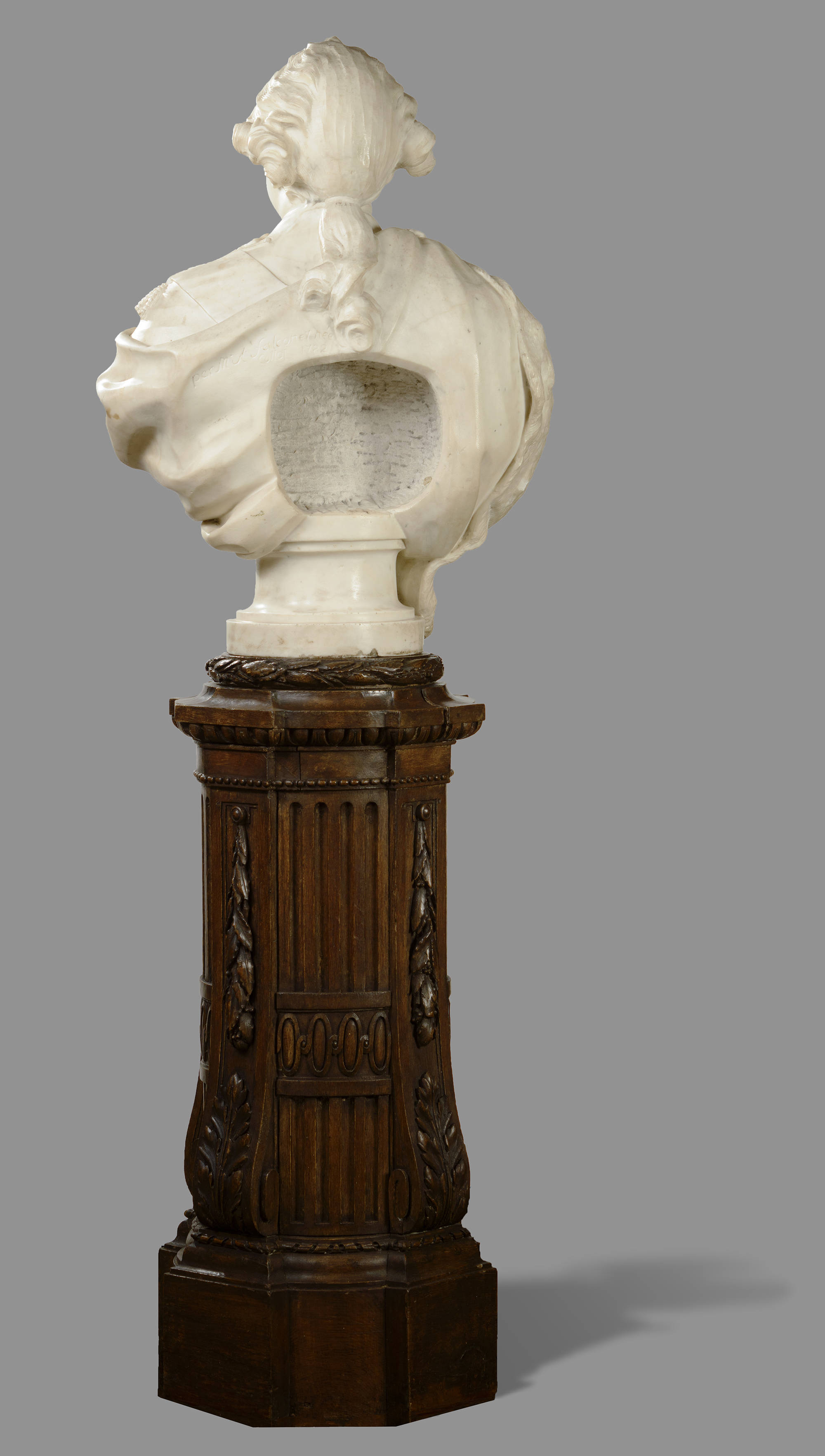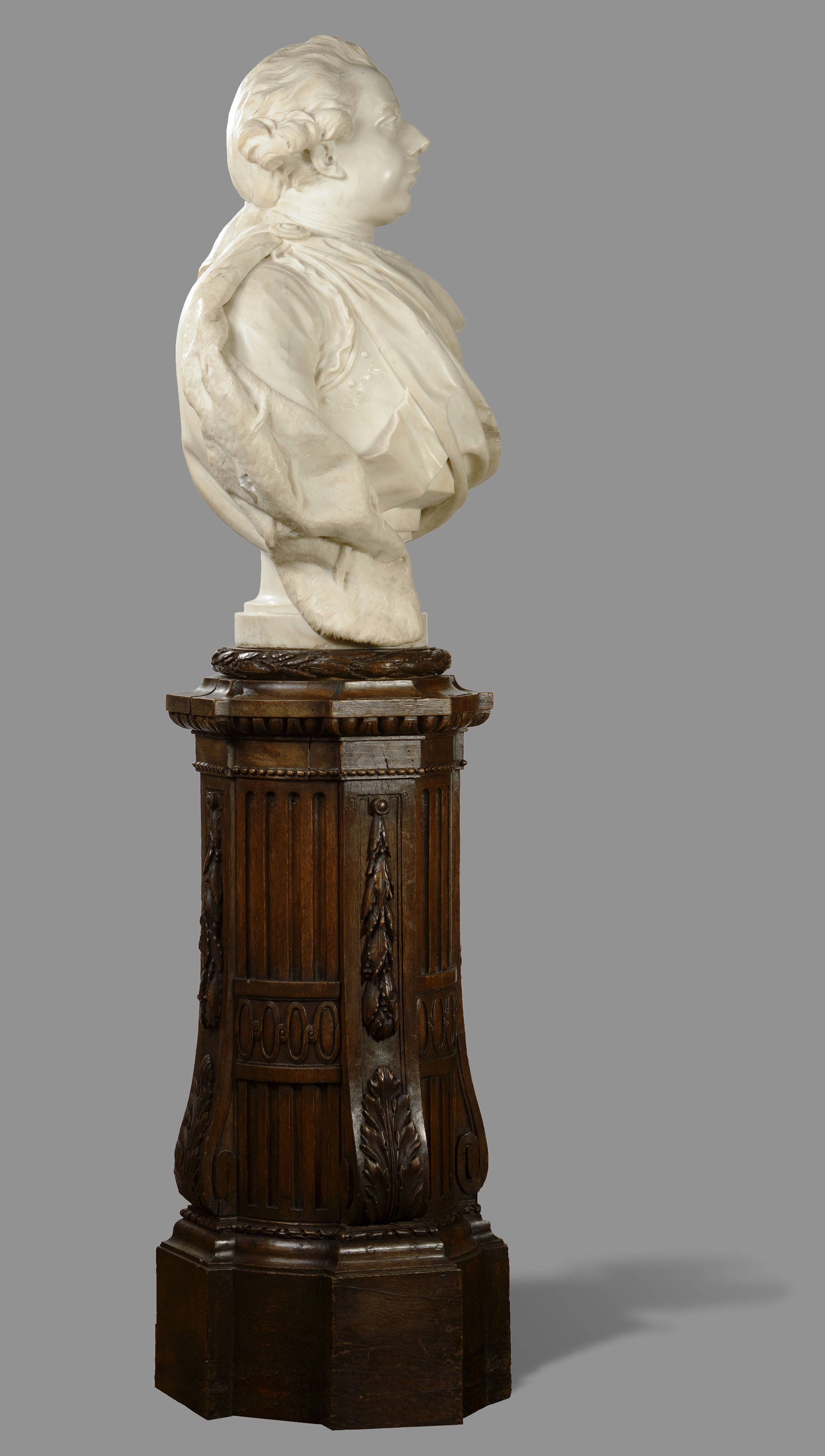 There may be no portraits of them in the Gallery, but here we meet them at last: Stadholder William V and Wilhelmina of Prussia. Their marble busts were made by Marie-Anne Falconet, the daughter-in-law of the famous French sculptor Falconet. After travelling together to St. Petersburg to make a large equestrian statue of Peter the Great, they called in at several royal courts on their return journey to Paris, including the court in The Hague. William V commissioned Marie-Anne to make these two busts there. She first made them in plaster and later in Paris carved them in marble.