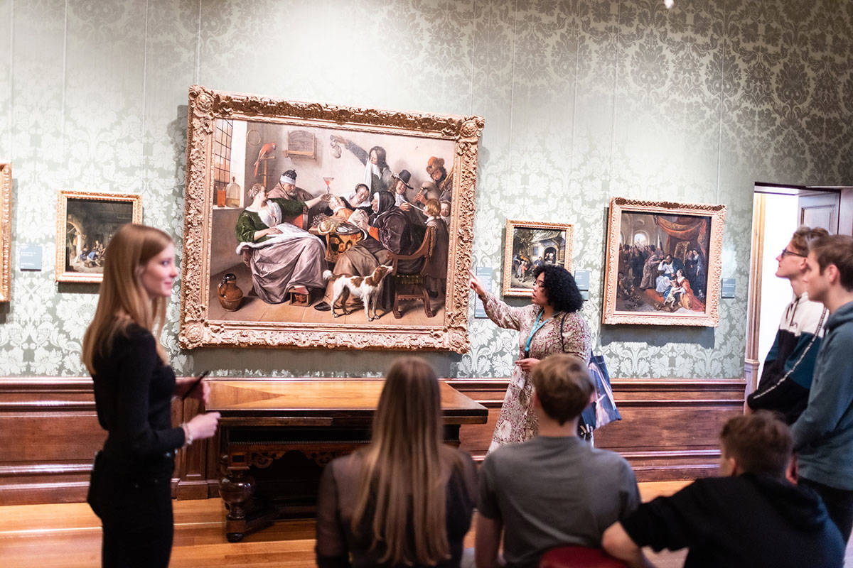 De tweede ontmoeting is in het museum, waar het gevarieerde programma wordt afgestemd op de aanwezige studenten. Gesprekken naar aanleiding van schilderijen worden afgewisseld met opdrachten die aansluiten bij de wereld van de studenten. Er zijn opdrachten met muziek en datingprofielen, maar ook gesprekken over slavernij en nepnieuws. Daarnaast zit in het programma vooral veel ruimte om tijdens het bezoek zoveel mogelijk in te gaan op de interesses, opleiding en het enthousiasme van de studenten. Op die manier wordt het museumbezoek voor iedere student betekenisvol en leren we als museum met andere ogen te kijken naar ons museum en onze collectie.